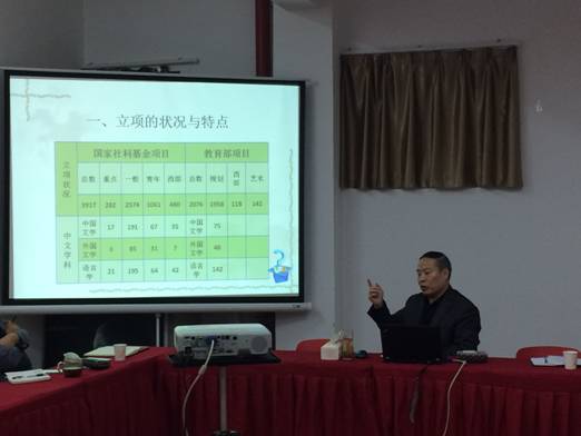 根据永利集团3044官网欢迎您2018年高层次项目申报工作部署,永利集团3044官网欢迎您充分利用专家资源,提升本院的科研水平。2017年10月25日,特请陕西师范大学文学院原院长李西建教授在江北2209会议室,为永利官网全体教师做了“如何提高社科项目申报的质量与效果”的学术报告。本次学术报告是永利官网本学年重要的科研系列活动之一。永利集团3044官网欢迎您党总支书记王辉、副院长雷升录、鲍丽、孙海洋及美术学、音乐学、艺术设计专业全体教师参加了本次活动。活动由雷升录副院长主持。