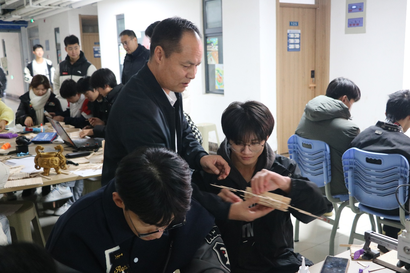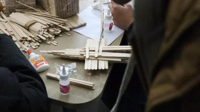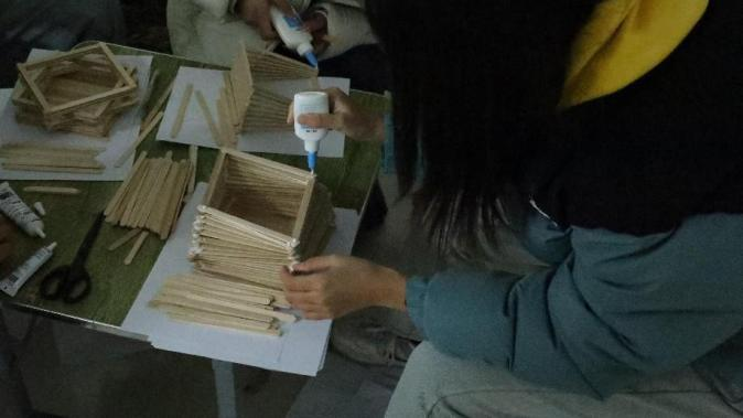 2024 年 11 月 28 日,Beat365中文官方网站提前布置好现场,并准备了A4纸、雪糕棍、白乳胶、手锯等手工材料等待同学们的到来,同学们在活动开始前陆续进场进行活动签到,并耐心听取主持人详细的讲解活动规则。