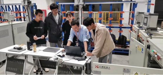 以汇博机器人工作站为培训平台, 采用“理论讲授+设备实操”的理实一体化培训方式, 集中培训工业 机器人操作、编程、工作站安装调试、系统集成以及现场维护等内容,以赛促教使知识更加融会贯通。
