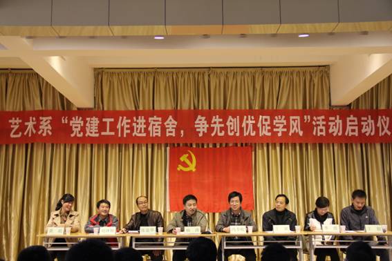 杨涛书记首先参加了艺术系和机关八支部“五联共建”的“党建工作进宿舍,争先创优促学风”活动启动仪式。杨书记给艺术系全体学生党员、入党积极分子、学生会干部、宿舍舍长做了重要讲话。他指出:艺术系学生管理工作近几年来在开展“艺术人生引领工程”的同时,坚持抓好宿舍文化建设,现已初见成效。现在又结合党的群众路线教育实践活动,开展了“学生党小组进宿舍”活动,这既有利于学生党建工作的开展,又能充分调动学生党员的积极性,充分发挥学生党员的模范带头作用,同时也解决了辅导员队伍人员缺口较大的问题。学生党员在老师的指导下,深入宿舍从细微处做学生的思想疏导工作,既能强化学生党员的责任意识,又能在同学的监督下,更好地树立共产党员的良好形象。与此同时,再由宿舍带动班级,以点带面,整体推进,全面促进艺术系的学风建设和宿舍文化建设。
