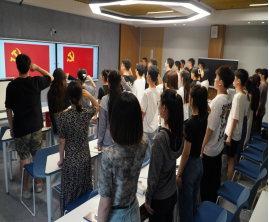 在理论教育环节,支部党员孟莉老师、李博老师分别领学了《中国共产党纪律处分条例》、《中国共产党廉洁自律准则》,并从对党员廉洁教育的基本要求、廉洁教育的重要意义、案例教育等不同方面向党员讲述了廉洁自律的重要性,引导全体党员筑牢思想道德防线,树廉洁之心、行廉洁之事,做廉洁之人。魏麟以《廉洁自律强党性,不忘初心担使命》为主题讲授专题党课。通过重温习近平总书记在二十大报告中对广大青年的殷殷寄语,使全体党员们深刻明白,要坚定理想信念,知敬畏、存戒惧、守底线,以忠诚干净担当的实际行动,践行新时代赋予的使命担当。她勉励毕业生党员们要始终牢记党员身份,筑牢廉洁意识,保持廉洁本色,将党的理想信念内化于心、外化于行。此外,她还围绕当前的就业形势、毕业生文明离校、毕业生党员组织关系转接等方面进行了详细说明。会上,毕业生党员段雨生带领全体党员,面向鲜红党旗,庄严地举起右手,共同重温入党誓词。党员们在铮铮誓言中重温入党初心,更加坚定为共产主义事业奋斗终生的决心。孟莉、李博分别为毕业生党员代表颁发了学生支部精心准备的毕业礼物。