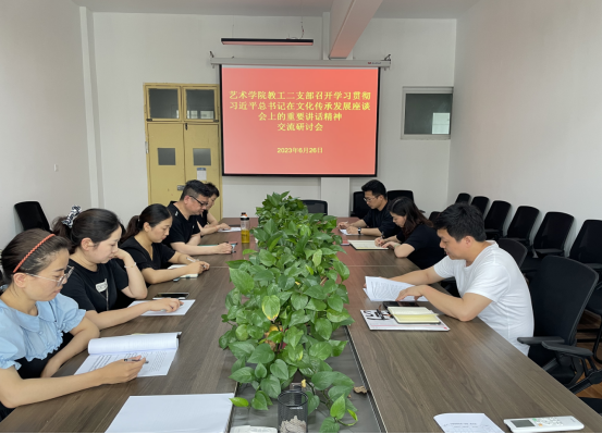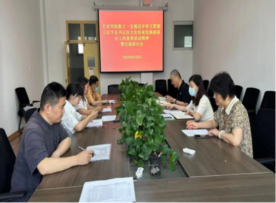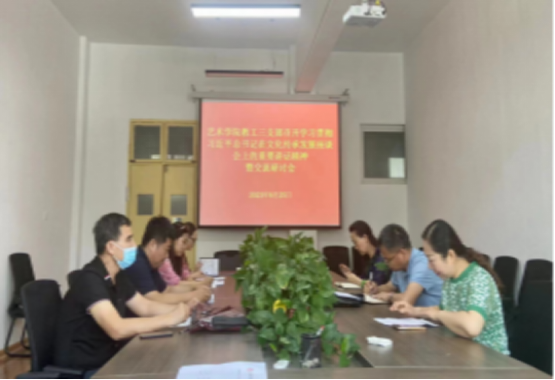 在学习会上,各党支部组织党员围绕坚定文化自信、建设文化强国,结合学院学科建设、教学、科研、社会服务等进行了专题学习讨论。大家在深学细研中,不断增进对习近平新时代中国特色社会主义思想的政治认同、思想认同、理论认同、情感认同,并纷纷表示到要以习近平总书记重要讲话精神为指导,不断深化对文化建设的规律性认识,把立德树人根本任务与创作优秀作品、服务地方文化建设贯通起来,更好担负起新的文化使命,切实做到把学习成效转化为做好本职工作、推动党和人民事业发展的强大动力。