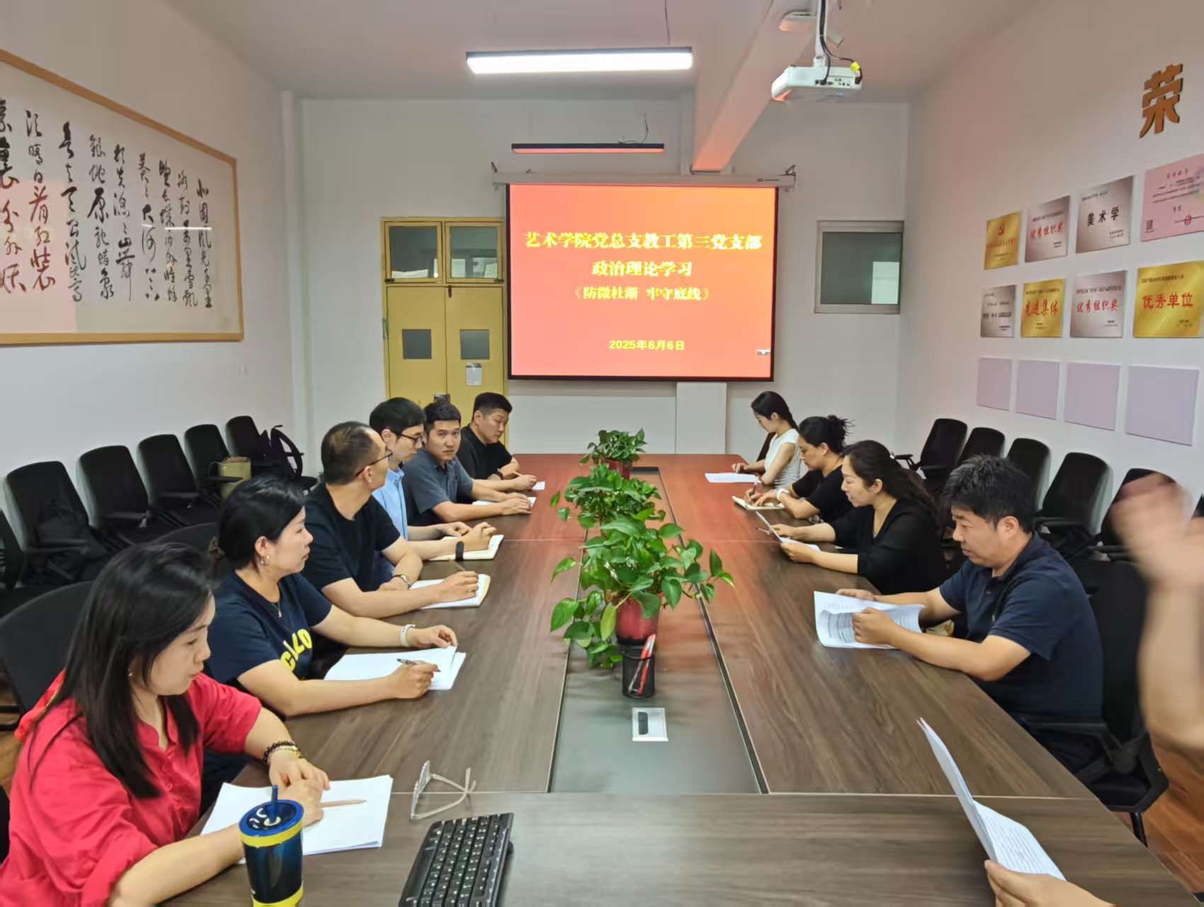 在集中学习环节,党员教师们共同学习了《中国共产党纪律处分条例》《中国共产党廉洁自律准则》等党内法规,深刻领会其精神实质和内涵要求。通过逐章逐条的研读,大家对党的纪律要求有了更清晰的认识,明确了行为的边界和底线。随后,党员教师们围绕“如何在日常工作和生活中做到防微杜渐,坚守纪律底线”这一主题展开了热烈的讨论。老师们纷纷结合自身的工作实际,分享了自己的学习体会和感悟。田川老师说:“作为一名党员教师,我们要时刻牢记自己的身份和使命,在日常教学和科研工作中,从细节入手,坚决抵制各种诱惑,做到廉洁奉公。”伦晓虎老师也谈到:“我们不仅要自己严守纪律底线,还要通过言传身教,引导学生树立正确的价值观和道德观。”