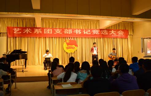 接着,主持人介绍竞选规则,来自音乐学、美术学、视觉传达设计的29同学逐个登上舞台展示个人风采,选手结合PPT进行三分钟演讲,演讲结束后随即进行评委老师提问环节,两部分的得分之和为最后的分数,选手们的演讲内容都围绕团支部建设与班级建设的种种设想展开,并介绍了自己的个性特点、获得的成绩、荣誉,表达了为集体服务的决心。竞选期间音乐学专业的学长和2015级音乐学新生还展示了个人的专业才艺,使整个会场洋溢着欢快、和谐的氛围。