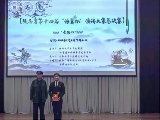 近日,由陕西大学生文化联盟、共青团西安外事学院委员会主办的陕西省第十四届“语翼杯”演讲大赛全省总决赛在西安外事学院举行。经过激烈角逐,永利官网2020级音乐学专业学生张思凡荣获二等奖和“最佳人气”荣誉称号。