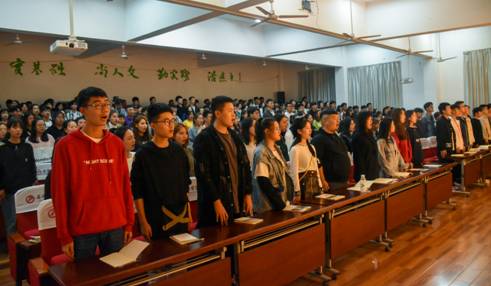 随后,学工办主任鲁澧宣读2019级新生入学教育方案,分别从指导思想,时间安排,教育内容三个方面进行阐述,帮助同学们树立正确的世界观、人生观和价值观,使同学们尽快适应校园环境和大学生活,尽快完成向大学生的角色转变,确立与时代背景和大学生活相适应的思维习惯和行为方式,确立自己的生涯规划和人生理想,了解学校并热爱所学专业,引导广大学子立志成才、全面发展、奋发有为。