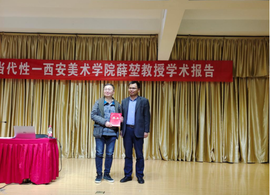 薛堃老师在报告中谈到:艺术史教学不应该仅仅局限于美术的风格变迁,而且应该培养学生进行历史层面的思考。更是提出艺术史教学应该设计历史学的基本课程,有助于学生了解历史分析的基本方法和原理,并且真正理解艺术史实背后的思想和知识体系。薛堃老师报告中用大量有代表性的当代国内外大师作品,展现了当代绘画要想具备当代性,就要具备对现实图像的判断力,能够在纷繁复杂万花筒般的图像中,寻找那些意味深长的瞬间,并付诸于画布。薛堃老师的报告内容丰富、资料翔实,精彩的报告博得了师生们阵阵掌声。报告会结束后,副院长成党伟为薛堃老师颁发兼职教授聘书,聘请薛堃老师为永利集团3044官网欢迎您兼职教授。