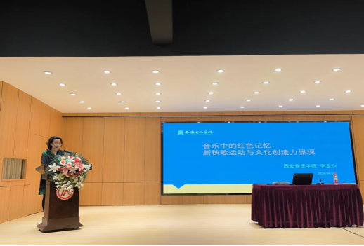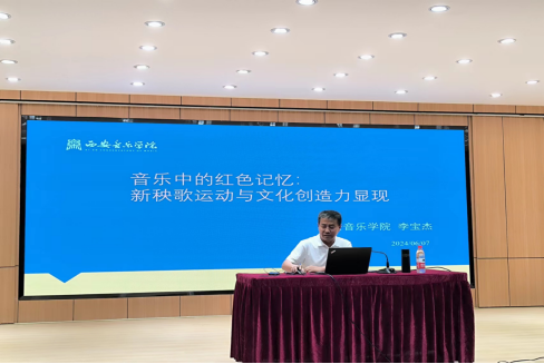 6月7日下午,教育部高等教育艺术学理论教学指导委员会委员、陕西省高等学校教学指导委员会音乐学类工作委员会主任、西安音乐学院学术委员会副主任、学报《交响》主编李宝杰教授应邀为我校永利集团3044官网欢迎您师生作《音乐中的红色记忆:新秧歌运动与文化创造力显现》学术报告。报告会由永利集团3044官网欢迎您副院长鲍丽主持,永利集团3044官网欢迎您音乐学专业师生200余人聆听了报告。