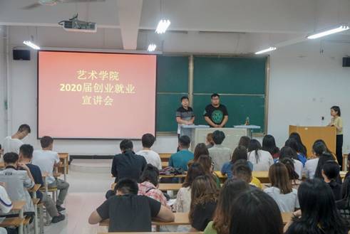 为进一步推动永利官网就业创业指导工作,加强对学生的就业创业指导与帮助,6月20日下午,永利集团3044官网欢迎您联合西安爱克斯未来文化科技有限公司在艺术楼2103教室举办2020届就业创业宣讲会,爱克斯未来科技文化有限公司校企合作主管罗超及其助手胡思佳、永利官网学工办主任刘泽桢、团总支书记薛涛以及2016级视觉传达设计全体学生到场参加。