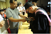 最后,全体起立齐唱校歌,肖老师宣布毕业典礼结束,师生合影留念。