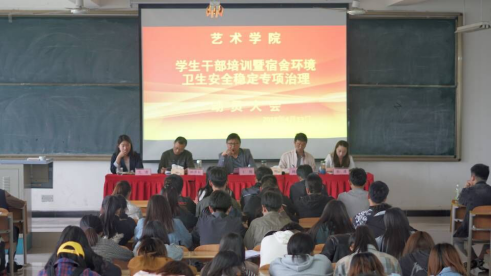 4月13日,永利官网在1204教室召开了“永利集团3044官网欢迎您学生干部培训暨宿舍环境卫生、安全稳定专项治理动员大会”。学院党总支书记王辉、学工办主任刘泽桢、团总支书记鲁澧、学生党支部书记艾蕾和辅导员杨厚东,以及永利官网学生会团总支干部、各班班长、团支部书记、宿舍舍长等参加了本次会议。大会由刘泽桢老师主持。