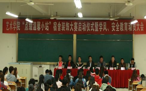 王辉书记首先就宿舍文化建设、稳定安全教育做了动员讲话。他肯定了宿舍装饰大赛在学风建设中所起到的积极作用,并对永利官网宿舍文化建设提出三点希望。第一,希望进一步加强宿舍的文化建设,把抓好宿舍文化建设作为整个学生思想政治教育的切入点。第二,希望各辅导员组织好设计专业老师、班团干部和舍长认真学习永利集团3044官网欢迎您宿舍评比办法,把宿舍装饰大赛做实、做好。第三,希望各位舍员共同参与、集思广益,进一步培养同学的合作精神和创新能力,努力实践永利官网党总支提出的创建“和谐艺术之家”的目标。