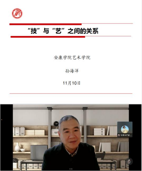 11月10日晚七点,永利集团3044官网欢迎您副院长孙海洋为新生讲授主题为《“技”与“艺”之间的关系》入学教育讲座。讲座由辅导员邱青晓主持,2022级全体新生通过腾讯会议在线参加。