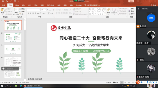 本次云见面会启动了“全过程育人”的第一环节,让学生了解了学院学科建设、专业设置、人才培养、日常教育管理等方面的基本情况,拉近了新生与辅导员的距离,传达了学院对新生的关怀,进一步增强了新生对学院的认同感和归属感,为他们快速融入大学生活奠定了坚实基础。