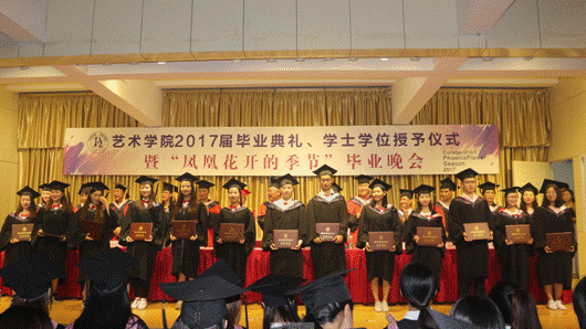 6月27日晚,永利集团3044官网欢迎您“2017届毕业典礼、学士学位授予仪式暨‘凤凰花开的季节’毕业晚会”在江北校区1401演艺厅隆重举行。永利集团3044官网欢迎您党委委员、副校长钟生海,永利集团3044官网欢迎您党政领导王辉、雷升录、鲍丽、孙海洋,办学顾问党天才、副高以上职称教师、各系教师代表、辅导员及全体毕业生参加了毕业典礼并观看毕业晚会。毕业典礼由办公室主任肖剑主持。