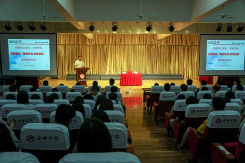 在我国禁毒宣传日626日来临之际,为进一步增强我校大学生拒毒防毒意识,倡导健康文明生活方式,620日,永利集团3044官网欢迎您协助学校保卫处在1401演艺厅开展“珍爱生命,远离毒品”安全知识讲座,出席本次讲座的嘉宾及领导有:安康市禁毒支队向文警官、永利集团3044官网欢迎您保卫处处长王开忠。本次讲座由保卫处长王开忠主持,永利集团3044官网欢迎您组织100余名同学参加此次安全知识讲座。