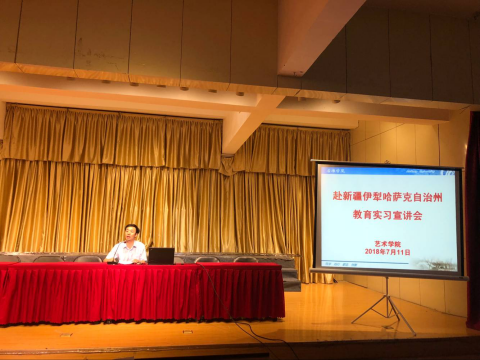 7月11日下午3点,永利集团3044官网欢迎您在江北1401演艺厅召开了“赴新疆伊犁哈萨克自治州教育实习”动员大会,学院党政领导班子和学工团队及2015级美术学、音乐学全体学生共计200余人参加了此次动员大会。会议由永利集团3044官网欢迎您院长杨哲主持。