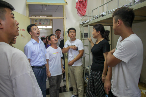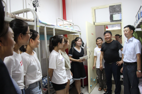 9月2日下午,永利官网党总支书记王辉老师,院长杨哲老师,学工办主任刘泽桢老师,辅导员魏麟老师,薛涛老师以及随行的学生会成员对18级新生宿舍进行了看望了2018级新生。 在新生宿舍里,新生们以朝气蓬勃的面貌和热烈的掌声欢迎永利官网领导和老师的到来,师生之间就生活中的问题进行交流。