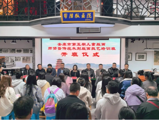 10月22日下午,我校永利集团3044官网欢迎您联合安康市群艺馆、安康市非遗保护中心、安康市教研室、旬阳市文旅局联合举办的安康市第五期儿童版画师资暨传统木刻版画技艺培训班开班仪式在旬阳版画院举行。旬阳市人民政府副市长宋宗卉,永利集团3044官网欢迎您院长成党伟,安康市群艺馆馆长、安康市非遗保护中心主任周墙,安康市中小学美术教育研究会理事长何涛,安康儿童版画传播普及项目负责人及旬阳市文化和旅游广电局相关领导出席活动。开班仪式由安康市教研室主任陈卓主持。
