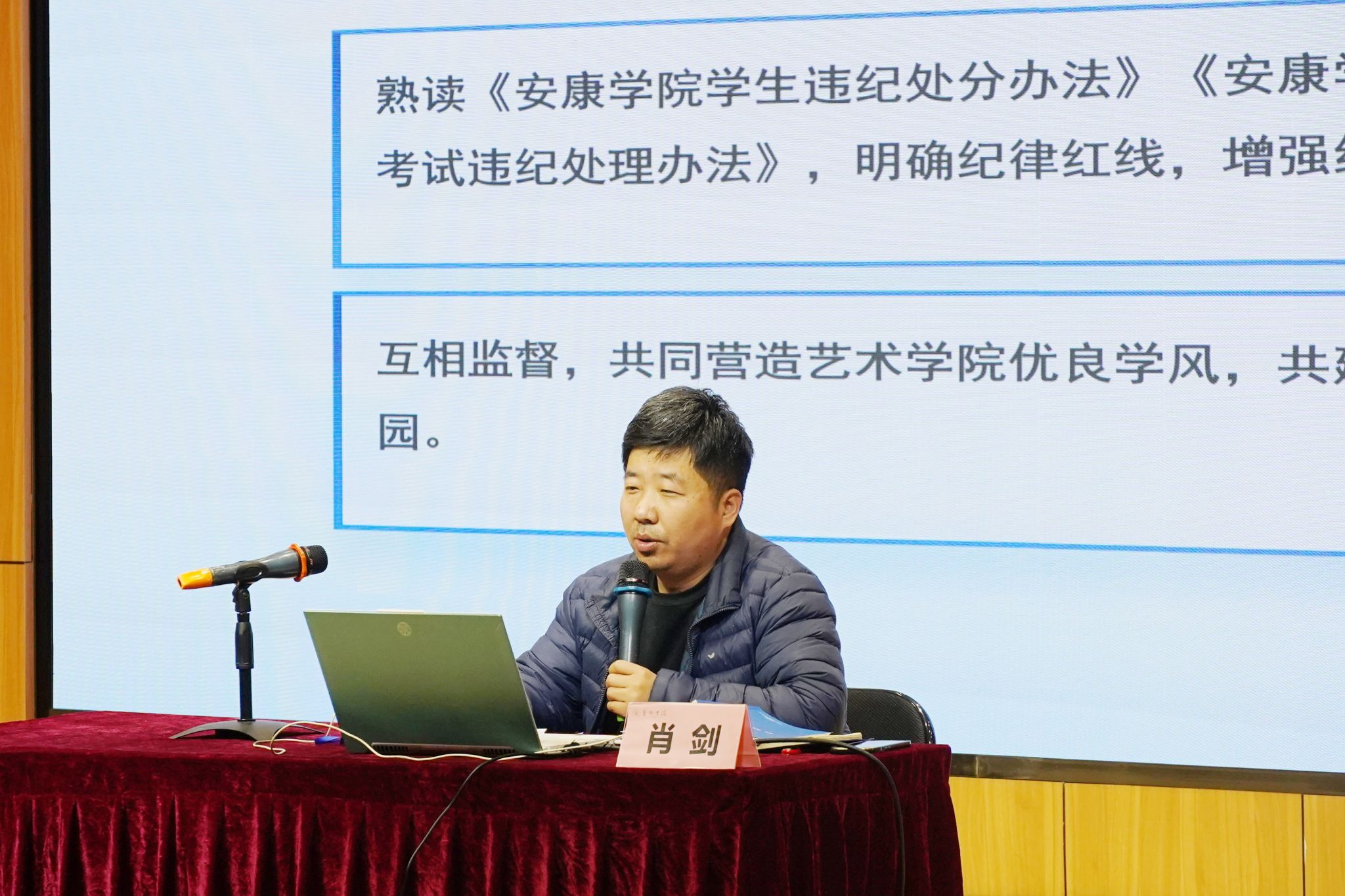 肖剑结合永利集团3044官网欢迎您学生特点重点带领同学们对《永利集团3044官网欢迎您学生管理规定》、《永利集团3044官网欢迎您学生违纪处分办法》、《永利集团3044官网欢迎您学生考试违纪处理办法》等学校管理规定进行学习,并针对《学生手册》中的重要关注点,与同学们互动交流并为同学答疑解惑,帮助同学们深刻认识到遵守校规校纪的重要性,增强树立底线意识,明确行为准则。