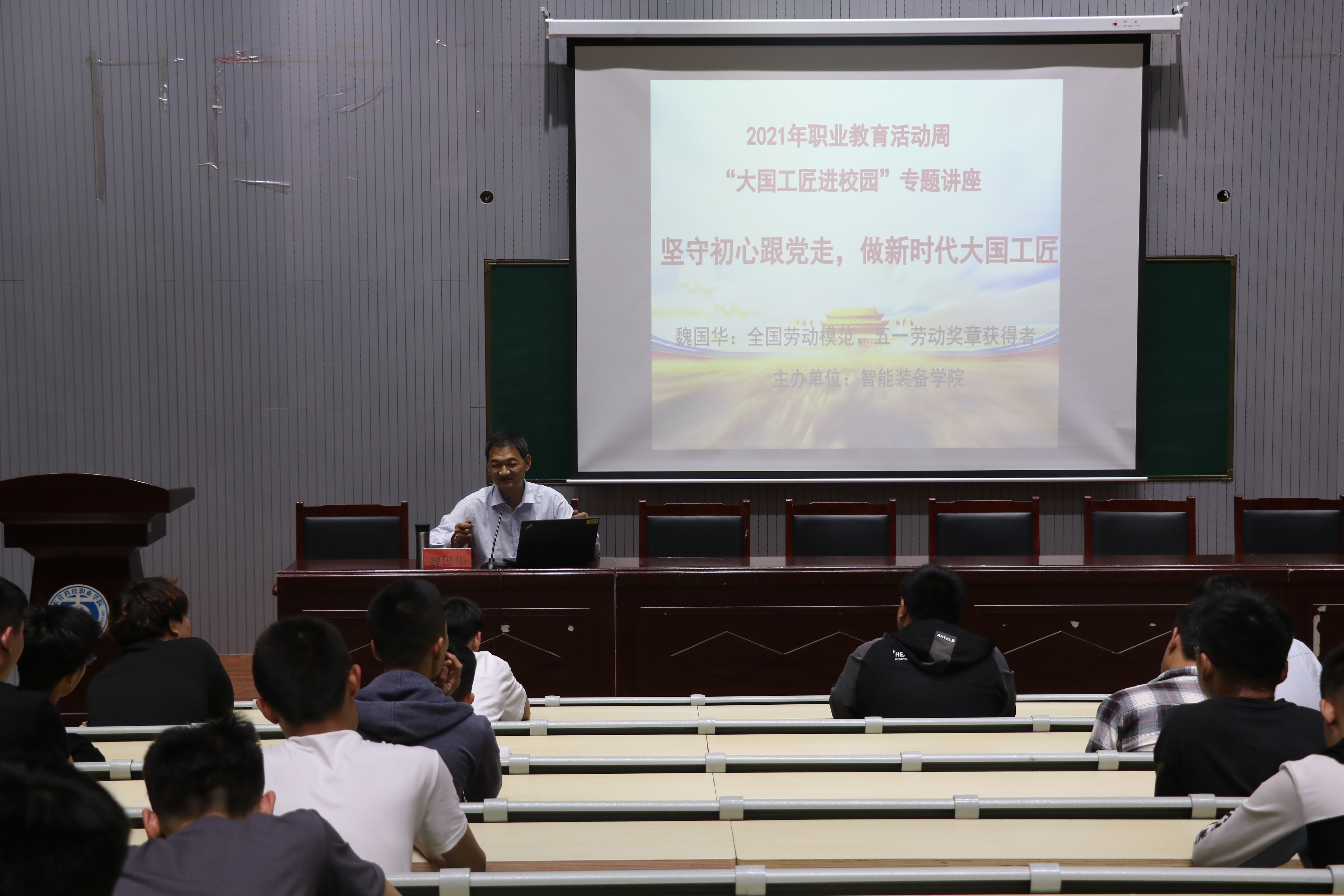 6月1日,Beat365中文官方网站邀请“全国劳模,五一劳动奖章获得者”魏国华给师生作“坚守初心跟党走、做新时代大国工匠”的主题报告会。