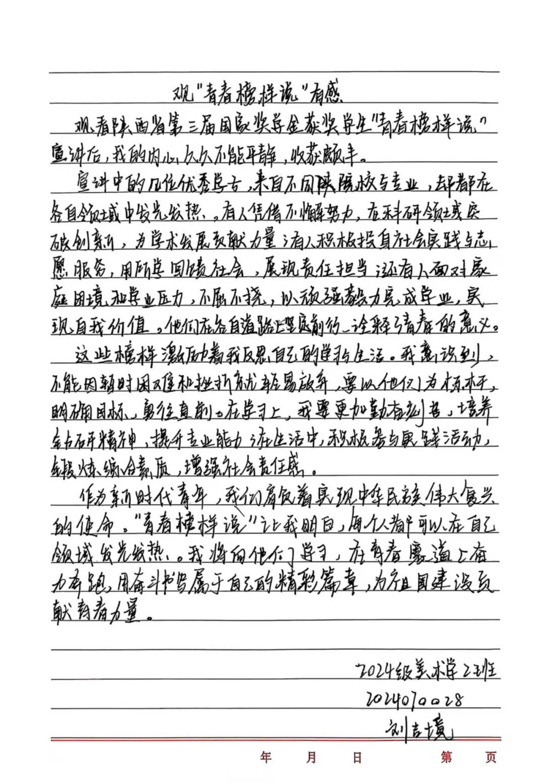 为激励广大青年学子对标先进典型,将青春奋斗融入党和人民事业,5月28日,永利集团3044官网欢迎您组织学生观看陕西省第三届国家奖学金获奖学生“青春榜样说”宣讲暨资助育人活动,通过真实生动的榜样故事,让奋斗精神绽放时代光芒,引导艺术学子勇担时代使命。