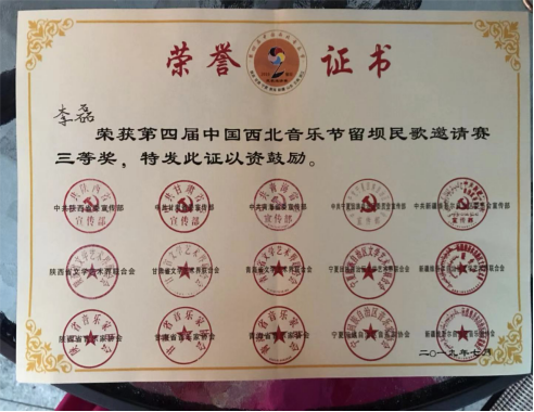 7月17日至19日,永利官网教师李磊副教授应邀参加第四届中国·西北音乐节留坝(八省区)民歌邀请赛。第四届中国·西北音乐节由西北五省区宣传部、文联、音协共同主办,本次在留坝举办的民歌邀请赛作为西北音乐节的延伸和发展,由陕西省音协、中共留坝县委县政府承办,山东、云南、浙江三省区音乐家协会联合支持,吸引了八省区的民歌选手参加。永利官网教师李磊在此次邀请赛中获三等奖。