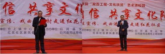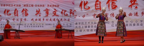 12月4日,我校永利集团3044官网欢迎您40余名师生,赴白河县仓上镇开展“双百工程.文化扶贫”文化帮扶活动,此次活主题为“艺术进校园——坚定文化自信、共享文化阳光”文艺演出。校统战部副部长、扶贫办副主任张富华,永利集团3044官网欢迎您副院长成党伟、鲍丽,仓上镇镇长文永超、副镇长李玖国以及1000余名学生和社区群众参加了此次活动并观看了文艺演出。