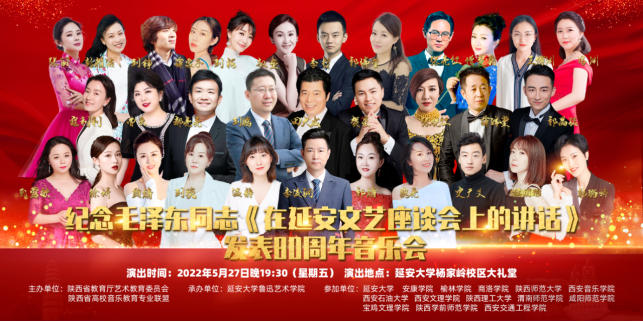 5月27日晚,由陕西省教育厅艺术教育委员会、陕西省高校音乐教育专业联盟主办的纪念毛泽东同志《在延安文艺座谈会上的讲话》发表80周年音乐会在延安大学杨家岭校区大礼堂精彩上演,此次活动旨在用音乐延续老一辈革命文艺工作者的艺术情怀,鼓舞新时代文艺工作者积极投身火热的文艺实践。我校永利集团3044官网欢迎您青年博士张亮红、王博渊应邀参与演出,在音乐会上演唱了民族歌剧《沂蒙山》—— “再看一眼亲人” 选段。