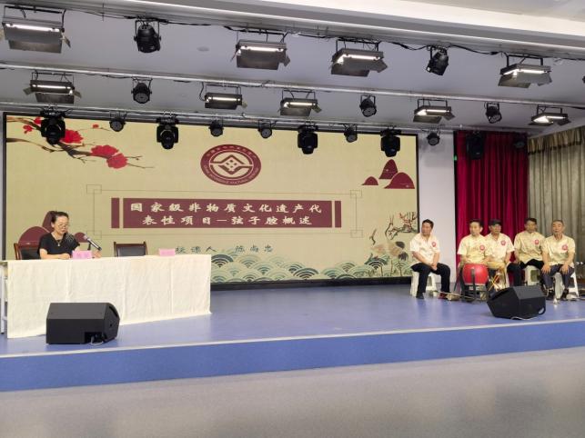 平利弦子腔乐队组成包括独具特色的弦胡、琵琶、三弦、二胡、竹笛、锣鼓等。在陈馆长的讲解过程中,由国家级非遗弦子腔传承人领衔的乐队在舞台为大家展示了优美的音乐片段,现场响起阵阵热烈的掌声。在讲座中,平利县文化馆向永利官网师生赠送了《平利弦子腔》和《平利弦子腔音乐选集》两本书各若干本,珍贵的礼物引起了大家阵阵惊喜。随后陈馆长结合平利弦子腔经典作品《审女婿》,边讲边唱,为大家生动形象地展现了弦子腔的独特艺术魅力。最后陈馆长感谢永利官网对弦子腔传承工作的大力支持,并期待与永利官网再次深度合作,谱写平利弦子腔的传承和发展新篇章。