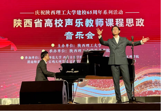 4月19日—20日,永利集团3044官网欢迎您副院长鲍丽、音乐系主任肖剑和青年教师张亮红博士应邀参加由陕西理工大学主办的“陕西省高校声乐教师课程思政音乐会暨红色经典歌曲育人价值学术研讨会”,一同参加的高校有陕西师范大学、西安音乐学院、西安石油大学、延安大学、西安文理学院、渭南师范学院、宝鸡文理学院、商洛学院等兄弟院校的专家学者,800余名师生聆听了音乐会。