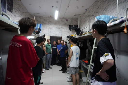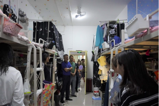 为深入了解学生返校后学习生活情况,确保学生返校后有一个安全稳定的学习生活场所。8月23日晚上7点,永利集团3044官网欢迎您党总支书记樊仁杰、副院长成党伟、党组织副书记李万明带领辅导员杨厚东、艾蕾、魏麟、薛涛到学生宿舍看望返校学生。