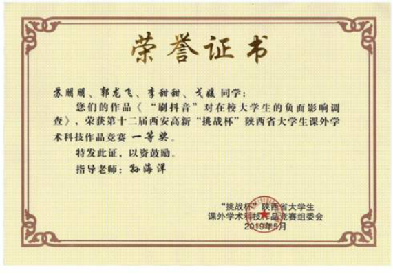 图30:永利官网学生获得“挑战杯”陕西大学生课外学术科技作品竞赛一等奖