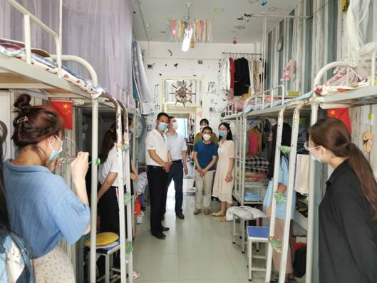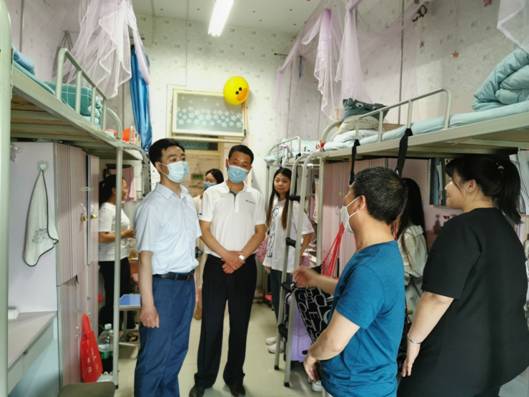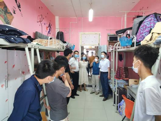 为认真落实学校《关于做好开学期间校园安全检查的通知》要求,确保已返校的毕业生在校园里能有一个安全稳定的学习生活场所。5月3日下午3点,永利集团3044官网欢迎您党总支书记樊仁杰、院长杨哲、专职组织员刘泽桢带领辅导员艾蕾、薛涛到学生宿舍看望返校毕业生。