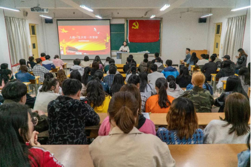 为坚定学生党员理想信念,更好地发挥学生党员的先锋模范作用。2019年4月1日晚19点30分,永利集团3044官网欢迎您学生党支部在江北校区2202教室组织入党积极分子、发展对象、预备党员、正式党员开展了主题党课培训暨政治理论学习会议。学生党支部书记鲁澧老师主持本次培训。
