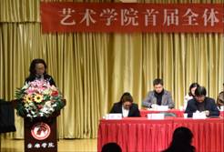 永利集团3044官网欢迎您院长杨哲向大会作了题为《提升内涵、彰显特色,谱写永利集团3044官网欢迎您跨越发展的新篇章》的工作报告,报告第一部分分别从发挥基层党建引领作用,为学院发展提供坚强保障、规范教学管理、推动教学改革,不断提高人才培养质量、发挥学科专业优势,挖掘地方艺术文化资源,科研与社会服务工作成效显著、“引、培、用”相结合,做好高层次人才引进和师资队伍建设工作、以生为本、做实做细,不断加强学生管理工作五个方面对2018年工作进行了回顾。结合永利集团3044官网欢迎您的实际,在第二部分和第三部分以永利集团3044官网欢迎您面临问题与挑战向与会教职工明确了2019年工作思路:一是贯彻落实十九大及全国教育大会精神,进一步增强立德树人的自觉性,二是以教育部本科教学审核评估及师范专业认证为抓少,加强专业内涵建设,三是尊重艺术类学科专业、课程特点,以课程为基础,以课堂为核心,全面深化教育教学改革。四是以提高教师教研科研能力为抓手,提升教师服务地方文化发展的能力。永利集团3044官网欢迎您分工会主席郭秀郭秀向大会作了永利集团3044官网欢迎您2018年度分工会工作报告,报告中对永利集团3044官网欢迎您分工会2018年加强制度建设,规范常规管理、加强民主管理,维护会员基本权利、坚持工会工作与党建工作相结合,提升教职工政治素质、积极开展文体活动,丰富教职工生活、密切联系群众,积极开展送温暖活动、工会经费支出情况、存在的问题和努力方向七个方面的工作向大会作了报告并提出了2019年风工会工作的基本思路。