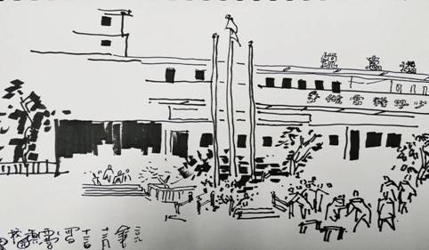中午十一点,两校艺术社团现场交流教学,在永利集团3044官网欢迎您老师的引导下,器乐社团跟着王一凡老师学吹小号、舞蹈社团跟着李玉娇老师翩翩起舞、版画社团跟着毛德龙老师学习刀法,原春明、骆阳、胡伟老师下班级编排黑板报,整个活动热烈有序。在速写校园美景中,两校的美术教师捕捉校园生动的人物形象,采用速写的表现形式,用生动的线条描绘一幅幅校园美景图,图中有喜笑颜开的教师,有活泼可爱的学生,还有校园处处美景。