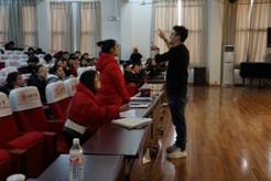 2018年12月11日14:30,在江北校区1401演艺厅举办了《奥尔夫教学法的应用与实施》学术讲座。永利集团3044官网欢迎您副院长鲍丽、音乐系教师张慧、范义付、雷音、李娜、肖宁、鄢志莉、伦晓虎、李磊等老师,安康高新第一小学、第四小学,汉滨小学五位教师和音乐学专业17级、18级同学参加了学术讲座。讲座由办公室主任肖剑主持。