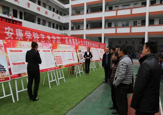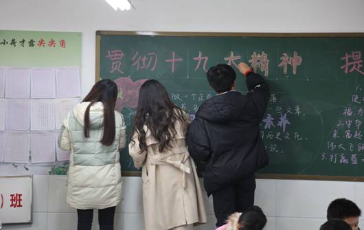 上午11:00,永利集团3044官网欢迎您在西营小学举办了由永利集团3044官网欢迎您纪委主办,宣传部、组织部、永利集团3044官网欢迎您党总支承办的 “贯彻落实十九大精神宣传展板联展走进白河”展板联展宣讲活动,四位讲解员为师生为西营镇中心小学师生系统讲解了十九大的主要精神,受到了县教育局领导和西营镇中心小学的师生的好评。美术系、设计系师生深入班级宣传十九大精神,并为班级设计十九大主题黑板报,受到小学生的欢迎。
