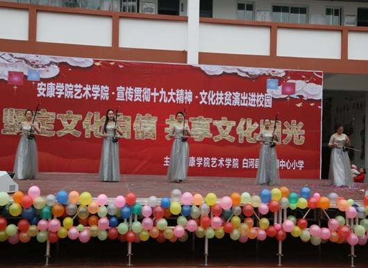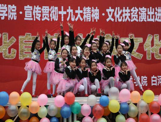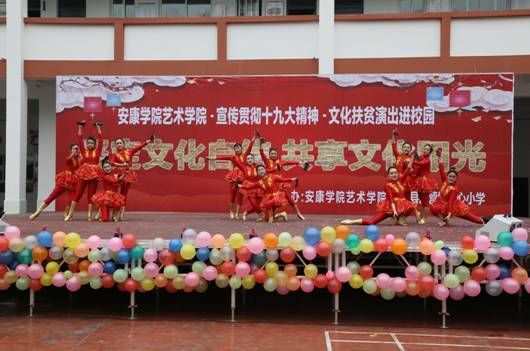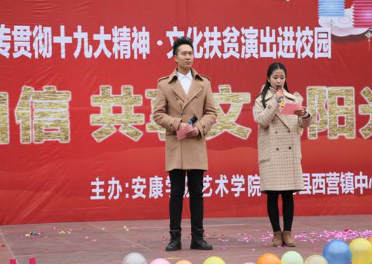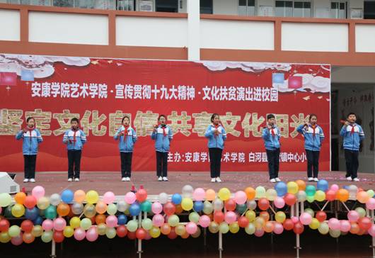12月15日,永利集团3044官网欢迎您70余名师生,赴白河县西营镇中心小学,举办“坚定文化自信,共享文化阳光”为主题的贯彻落实十九大精神、文化扶贫演出进校园”活动。政府督学徐维山、县教育局人事股长黄开国、西营镇党委书记王海波以及2000余名师生、群众参加了活动。