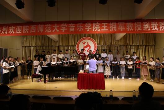 5月31日下午3点,陕西师范大学音乐学院副院长,硕士研究生导师王拥军教授在江北校区1401演艺厅,为永利官网音乐专业师生进行了题为“指挥技能在合唱作品中的应用”的学术报告及现场教学指导,本次讲座也是永利官网“第二届文化艺术月”系列重要活动之一,副院长雷升录、鲍丽、孙海洋及音乐学专业全体师生参加了本次活动,本次活动由永利官网副院长鲍丽主持。