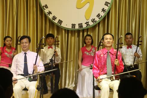 音乐会在永利官网客座教授、著名二胡独奏家蒋才如及二胡教师翟新华老师及12名学生共同演奏的二胡齐奏《北京有个金太阳》、《赛马》中拉开序幕。