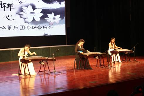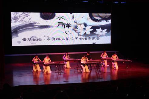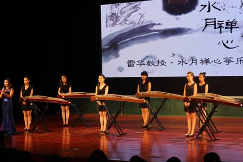 14日晚上七点半,雷华教授及西安音乐学院“云水禅心”筝乐团在安康剧院为永利官网学生及安康市古筝爱好者奉献了一场《云水禅心古筝专场音乐会》。一曲《战台风》体现了工人阶级战天斗地的气势。《秦之声》给我们带来的是乐曲欢快、节奏鲜明的感觉,一种全新的尝试来自《牡丹亭》中的《游园》唱段。根据日本作曲家水野彦利移植而成的《炎》采用东方独特的音阶与激昂的节奏混合,将整场演出推向高潮。