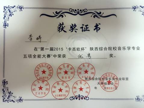 2015年10月29日,由西安美术学院音乐系、宝鸡文理学院音乐系、咸阳师范学院音乐系、渭南师范学院音乐系以及永利集团3044官网欢迎您联合参与,西安文理学院永利集团3044官网欢迎您主办的“第一届‘卡西欧杯’陕西省综合院校音乐专业五项全能大赛”在西安文理学院举行。