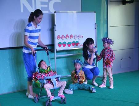 活动现场,有来自福利院老师和孩子们的精彩表演。稚嫩的面庞,咿呀的碎语,虽然有的大家可能听不太清楚,但是孩子们依旧在努力地将表演继续下去,看着他们,我们每个人在心底涌动出的是一种感动与祝愿。