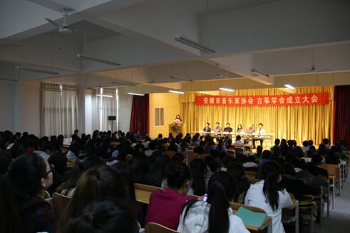 2014年11月10日安康市音乐家协会古筝学会成立大会在永利集团3044官网欢迎您江北校区艺术系演艺厅举行。届时出席会议的有陕西省音乐家协会考级办主任张威军、陕西省秦筝学会副会长、秘书长薛莲、安康市音乐家协会主席刘秉平、永利集团3044官网欢迎您宣传部部长鲁延安、永利集团3044官网欢迎您艺术系党支部书记冯丰收、永利集团3044官网欢迎您艺术系副主任雷升录、永利集团3044官网欢迎您艺术系音乐教研室代理主任田川。