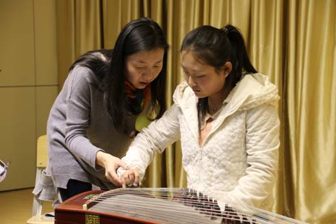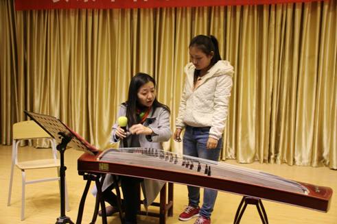 在成立大会结束后由薛莲副教授为同学们上了一堂生动的古筝公开课,薛莲副教授从学习古筝的基本功训练、摇指技巧的训练到音乐中气息的运用,让同学们从不同的角度感受到古筝丰富的音响效果和音乐表现力。