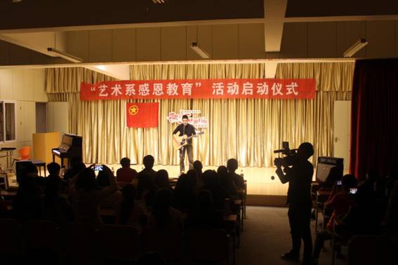 接下来,启动仪式进入第二个板块,进行由2013级音乐学专业学生主办的艺术系“感恩存心、感谢有你”感恩教育主题晚会。我系小虎合唱团演唱的曲目《师恩如歌》,悠扬的歌声,动情的表演,完美地演绎了和谐的师生情谊。朗诵《感恩我的祖国》,雄浑中透露着中华儿女的自豪之感,深情中流露出浓浓的爱国情思。