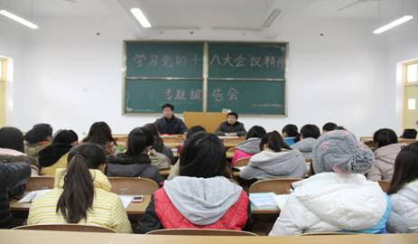 系学工办主任刘泽桢要求同学们把学习十八大精神与自己专业相结合,内练素质,刻苦学习,打好基础,为全面建成小康社会做出自己应有的贡献。