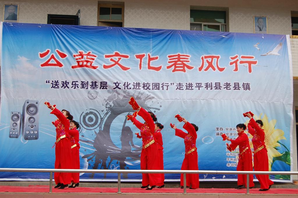 由安康市文化文物广电局主办,永利集团3044官网欢迎您艺术系、安康市群艺馆、安康市青少年宫等单位承办的我市一年一度的“文化艺术三下乡”活动,于2011年1月14日在平利县老县镇拉开了帷幕,受到当地领导和群众的热烈欢迎。